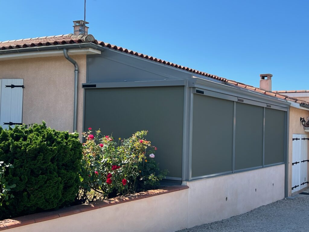 Dernière réalisation en date : la fabrication sur-mesure et la pose de plusieurs stores zip solaires pour une superbe véranda :